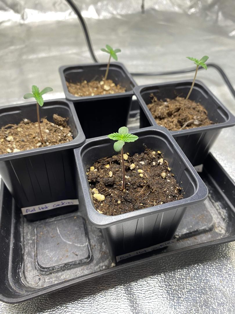 4 seeds of Red Hot Cookies® were used and all the seeds sprouted without any problem. They were then planted in 0.4 litre pots.