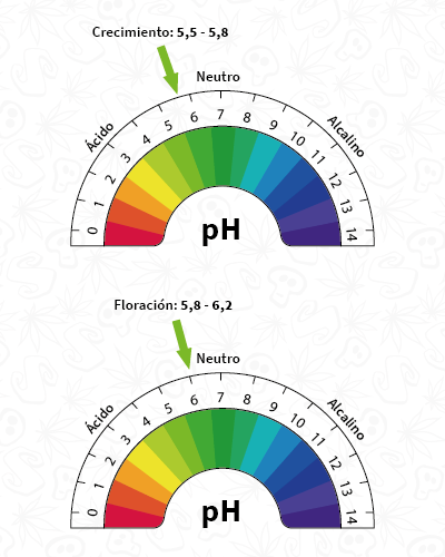 Un pH fuera de rango provoca bloqueos nutricionales y deficiencias. Contrólalo diariamente y ajusta en caso necesario con productos pH+ o pH-.