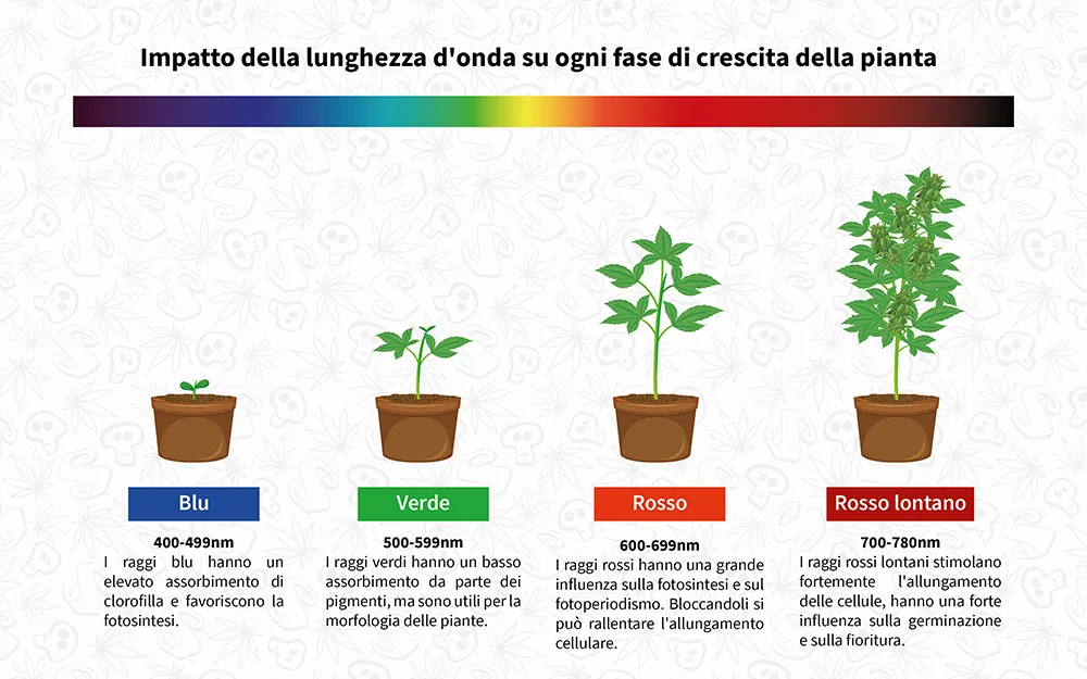 Impatto della lunghezza d’onda nelle singole fasi di crescita della pianta
