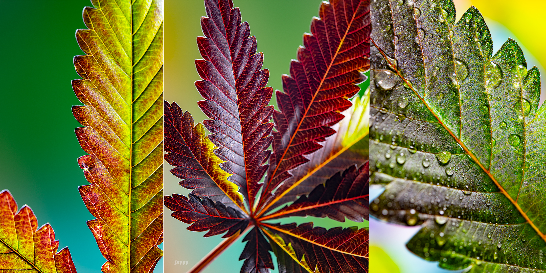 Los tres grupos principales de pigmentos responsables de los colores son las clorofilas (verdes), los carotenoides (amarillos, naranjas) y las antocianinas (rojos, púrpuras, azules). Mientras que clorofilas y carotenoides están presentes en prácticamente todas las plantas de cannabis, las antocianinas sólo se expresan en genéticas específicas o bajo condiciones ambientales particulares.