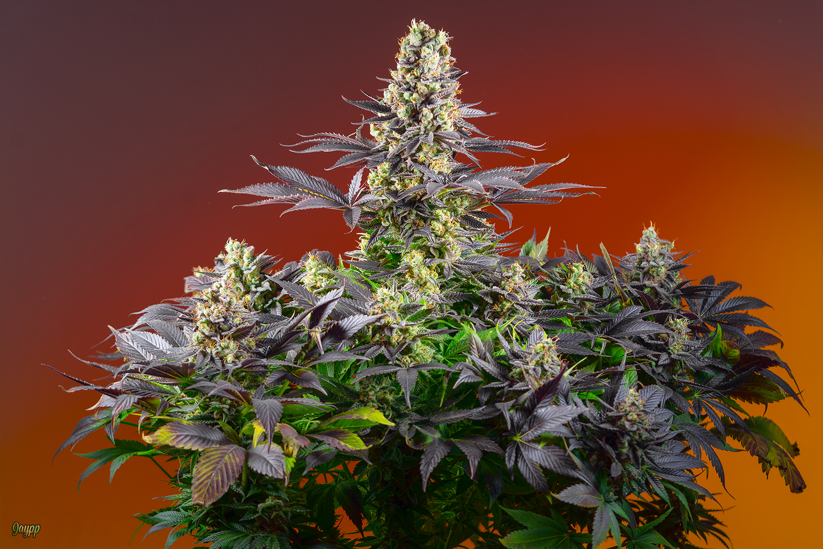 Es una cepa auto muy compacta de gran producción. Los cogollos exhiben tonalidades que van desde el rojo intenso al púrpura lavanda en las hojas cercanas, hasta púrpura oscuro casi negro en los cálices, con pistilos naranja brillante que crean un contraste espectacular.