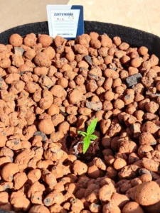 Luego de germinarla con éxito, se plantó la semilla. Si bien fue plantada tarde en la temporada, se aprovechó el buen clima con sol para que sus dos primeras semanas de crecimiento sean al aire libre.