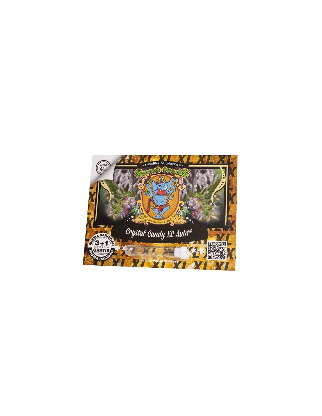 Crystal Candy XL Auto® surge del cruce de líneas genéticas seleccionadas de gran altura de Crystal Candy Auto®, dentro de un programa de Sweet Seeds® centrado en la búsqueda de aromas dulces y complejos. El resultado es una autofloreciente de talla XL que combina producción, resina y un perfil terpénico único.