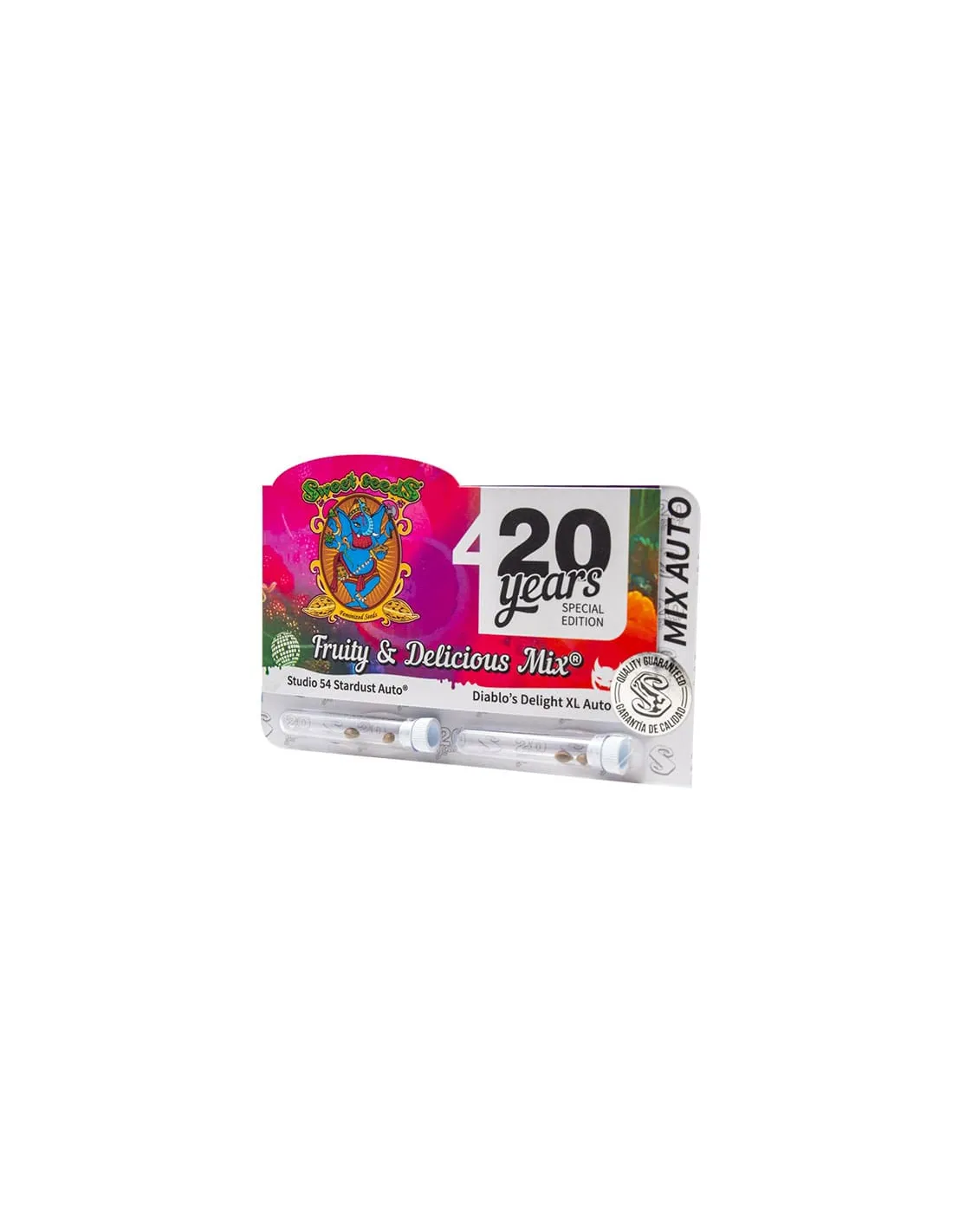 Este Pack Mix Especial 20.º Aniversario combina dos variedades diferenciadas en el pack, con perfiles terpénicos intensamente afrutados y matices exóticos. Una selección de semillas de colección que destaca por su diversidad y riqueza aromática.