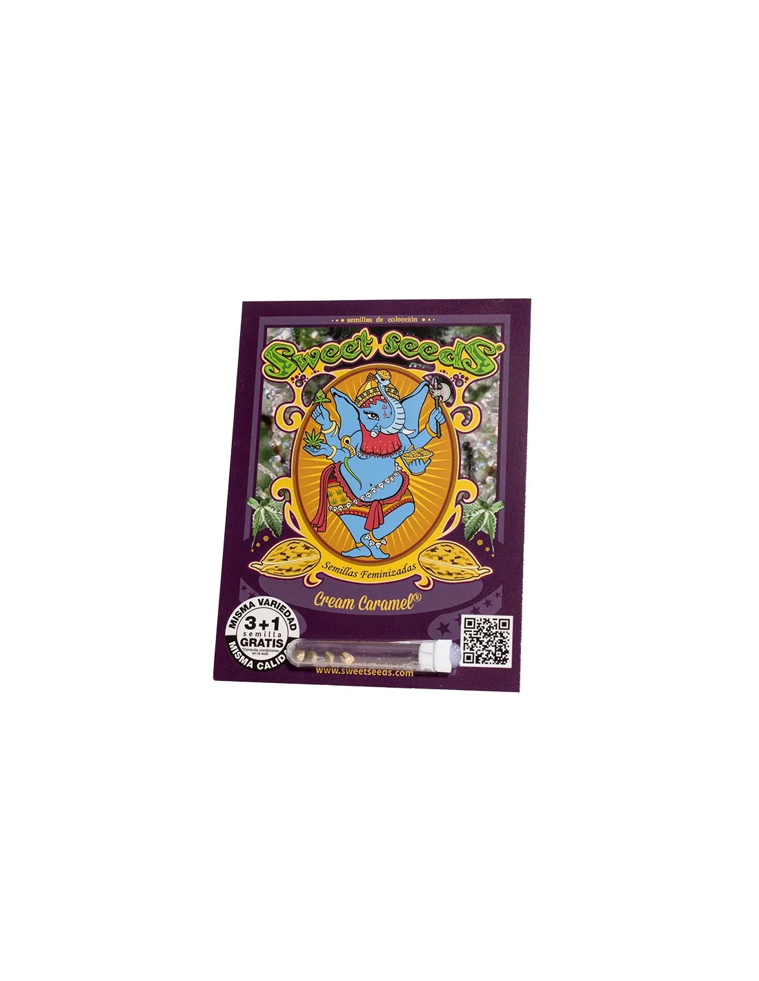 Cream Caramel® es una variedad clásica de la colección genética de Sweet Seeds®, fruto del cruce entre Blue Black, Maple Leaf Indica y White Rhino. Reconocida y premiada internacionalmente, destaca por su intenso sabor dulce y acaramelado con matices terrosos. Con estructura compacta de índica clásica, es ideal para interior y exterior, y una favorita entre los coleccionadores de genéticas mayormente índica, por sus potentes efectos relajantes.