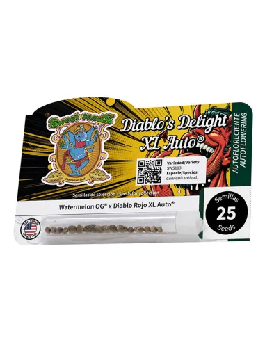 Samonakvétací hybrid 4. generace. Výsledek křížení lahodného Watermelon OG a působivého Diablo Rojo XL Auto® (SWS110), známého svými pryskyřičnými načervenalými květy a kompaktní strukturou. Kombinuje to nejlepší z obou genetik a výsledkem je vysoce aromatický a velmi krásný kmen.