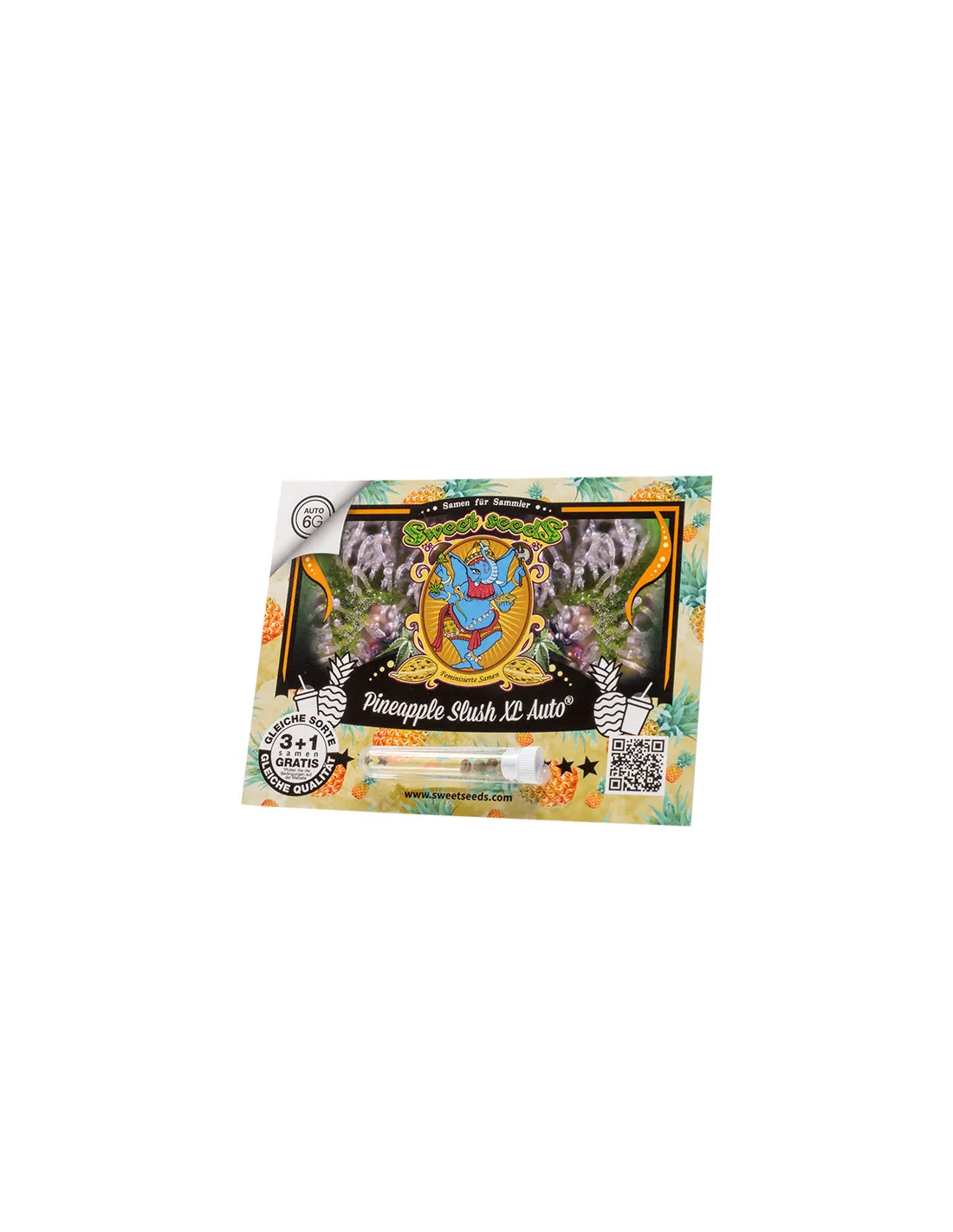 Extra velký samonakvétací kmen 6. generace, vysoce pryskyřičný a aromatický. Kombinuje genetiku exotického Pineapple Express (Trainwreck x Hawaiian) se silnou a aromatickou Sweet Mandarine Z XL Auto® (SWS102).