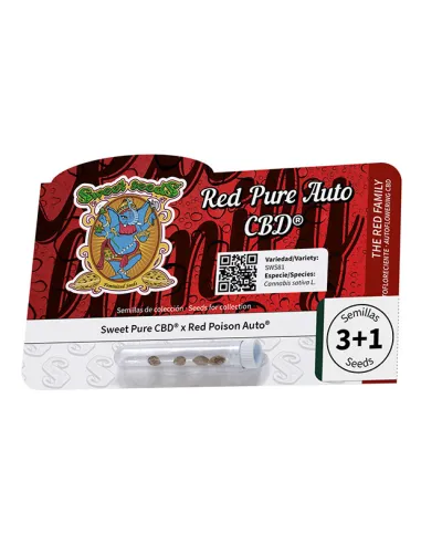 Tento „CBD čistý“ samonakvétací kmen se vyznačuje červenými květy, velmi nízkými hladinami THC (0,4-0,5%) a vysokým obsahem CBD (15-17%). Je to kříženec mezi našimi vlastními kmeny: Sweet Pure CBD® (SWS65) a Red Poison Auto® (SWS39).