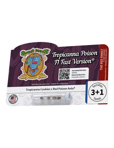 Wir empfehlen unsere Tropicanna Poison F1 Fast Version® für Sammler ultraschnell blühender, lichtabhängiger Genetik, die Sorten mit einem außergewöhnlichen Terpenprofil und einem atemberaubenden visuellen Reiz dank ihrer rötlichen Blüten suchen. Ideal für alle, die Wert auf Schnelligkeit, intensive Aromen und Geschmacksrichtungen sowie auf die ästhetische Schönheit von Cannabis-Pflanzen legen.