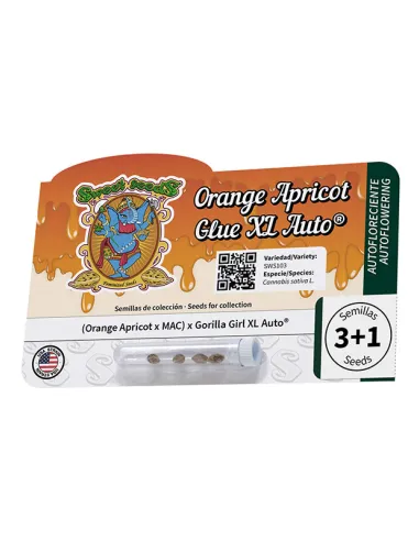 Die Orange Apricot Glue XL Auto® ist das Ergebnis einer Kreuzung zwischen dem Elite-Klon der Orange Apricot x MAC und der kraftvollen Gorilla Girl XL Auto® (SWS82). Das Ergebnis ist eine ertragreiche selbstblühende Sorte mit starker Wirkung und einem außergewöhnlichen Aromaprofil, die die besten Eigenschaften ihrer Elternpflanzen vereint.