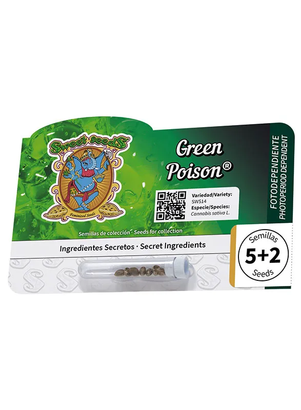 One of the most awarded strains in Sweet Seeds®' genetic collection, Green Poison® has been recognized by expert judges in various cannabis competitions. To date, it boasts 22 trophies across different categories, including Indoor, Outdoor, and Extracts. An impressive record that continues to grow each year. This extensive list of awards not only confirms its outstanding quality but also highlights its versatility.