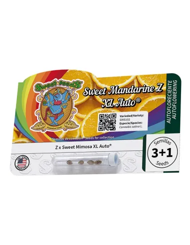 ES - Sweet Mandarine Z XL Auto® 3+1Autofloreciente de 5ª Generación. Resultado del cruce entre un clon élite de Z (muy potente y resinoso, con un marcado aroma tipo Sour Diesel cítrico, entre naranja y mandarina) y nuestra Sweet Mimosa XL Auto® (SWS94) que también tiene tonos aromáticos cítricos entre naranja y mandarina.