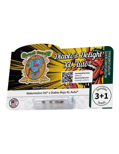 Cet hybride autofleurissant de 4e Génération est le fruit du croisement entre la délicieuse Watermelon OG et l'impressionnante Diablo Rojo XL Auto® (SWS110), célèbre pour ses fleurs rouges et sa structure compacte et résineuse. Il combine le meilleur des deux génétiques pour donner naissance à une magnifique variété très aromatique.