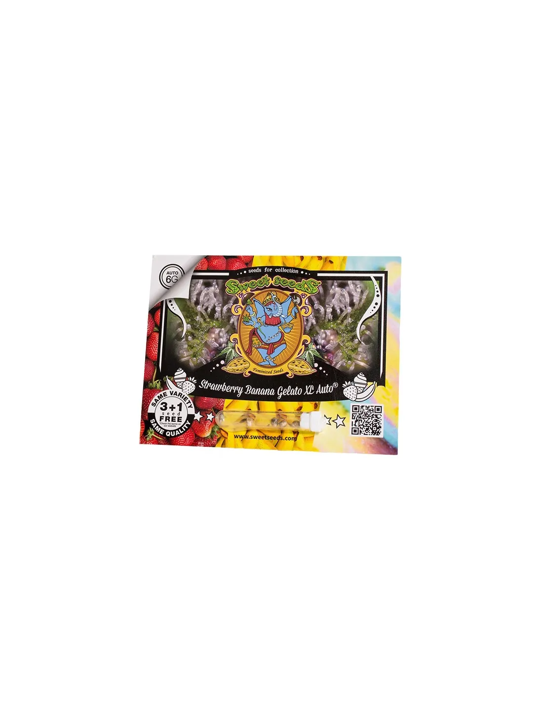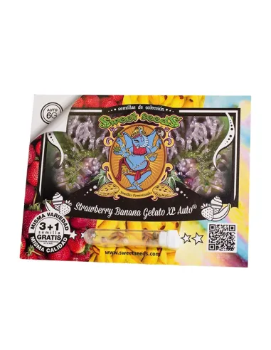 A 6th Generation autoflowering strain. This strain is the outcome of the cross between an elite clone of Strawberry Banana [Crockett's Banana Kush x Bubblegum (strawberry phenotype)] and a selected autoflowering genetic line of our Sweet Gelato Auto® (SWS76).